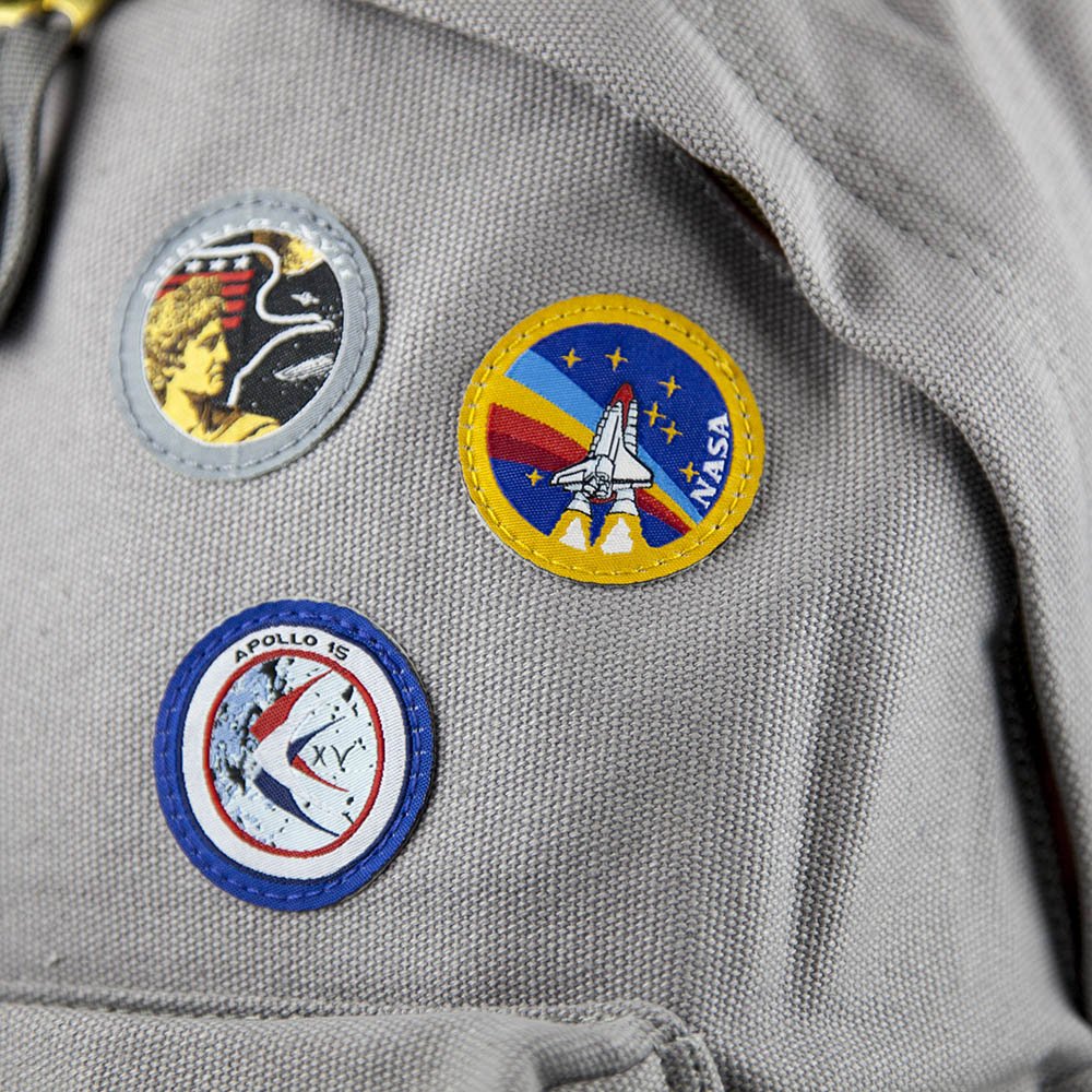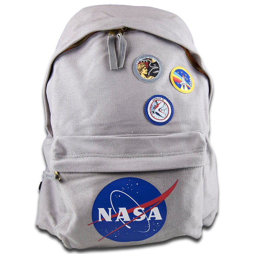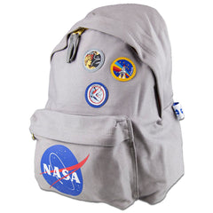 Here we go space fans, this is without a doubt the most awesome backpack in the solar system. Officially licensed by NASA, it's made of rugged canvas to guarantee many years of use. It's got real stitched replica patches from the Apollo 15 and Apollo 17 missions, plus a colourful NASA patch.