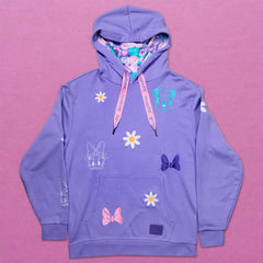 Oh, goodie! It’s time for a shopping spree! Inspired by our favorite feathered trendsetter, this oversized hoodie is designed with pastel and embroidered details to match Daisy Duck’s world-renowned sense of style. Look closely and you’ll find her bestie, Minnie, making a surprise appearance! Whether you’re planning a girls' night in or hitting the town, this hoodie will keep you looking cute and comfortable on your next outing.