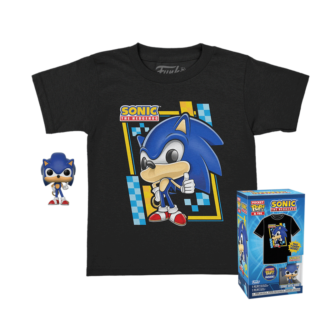 Sega Sonic the Hedgehog with Ring Pocket Pop! Vinyl and Tee Set for Kids